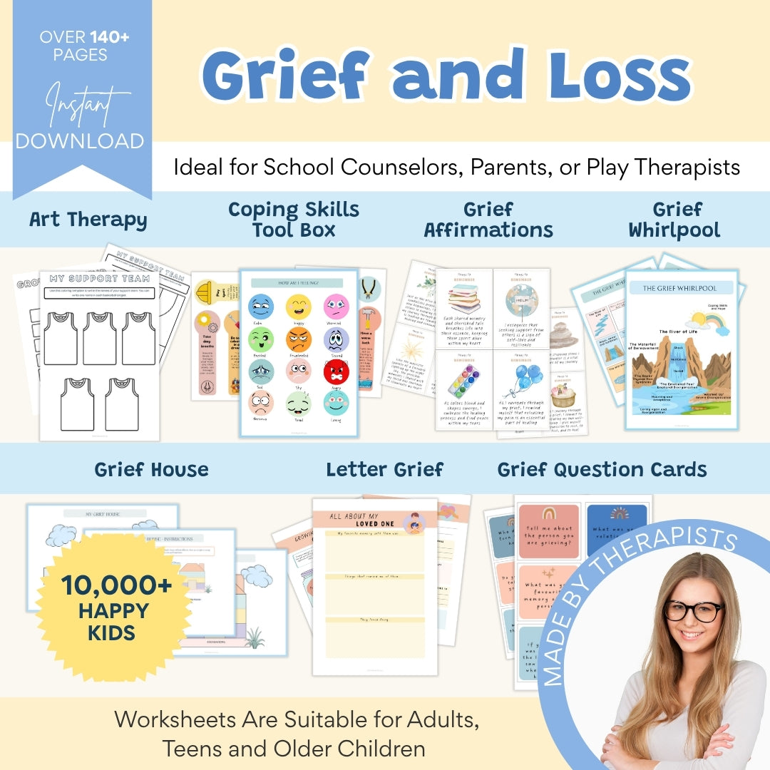 This gentle, therapist-designed printable toolkit helps children, teens, and adults understand and process grief in a compassionate and creative way. With over 140+ pages of visual tools and therapeutic exercises, it's ideal for school counselors, play therapists, parents, and caregivers.