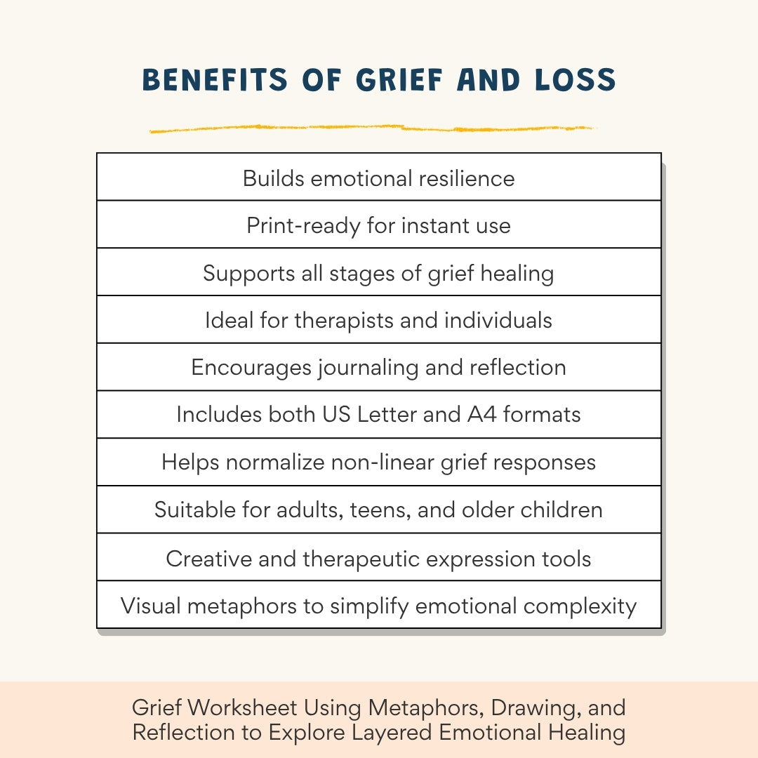 Designed by expert, this toolkit includes grief affirmations, visual worksheets, art therapy, and coping skill cards to guide healing gently.