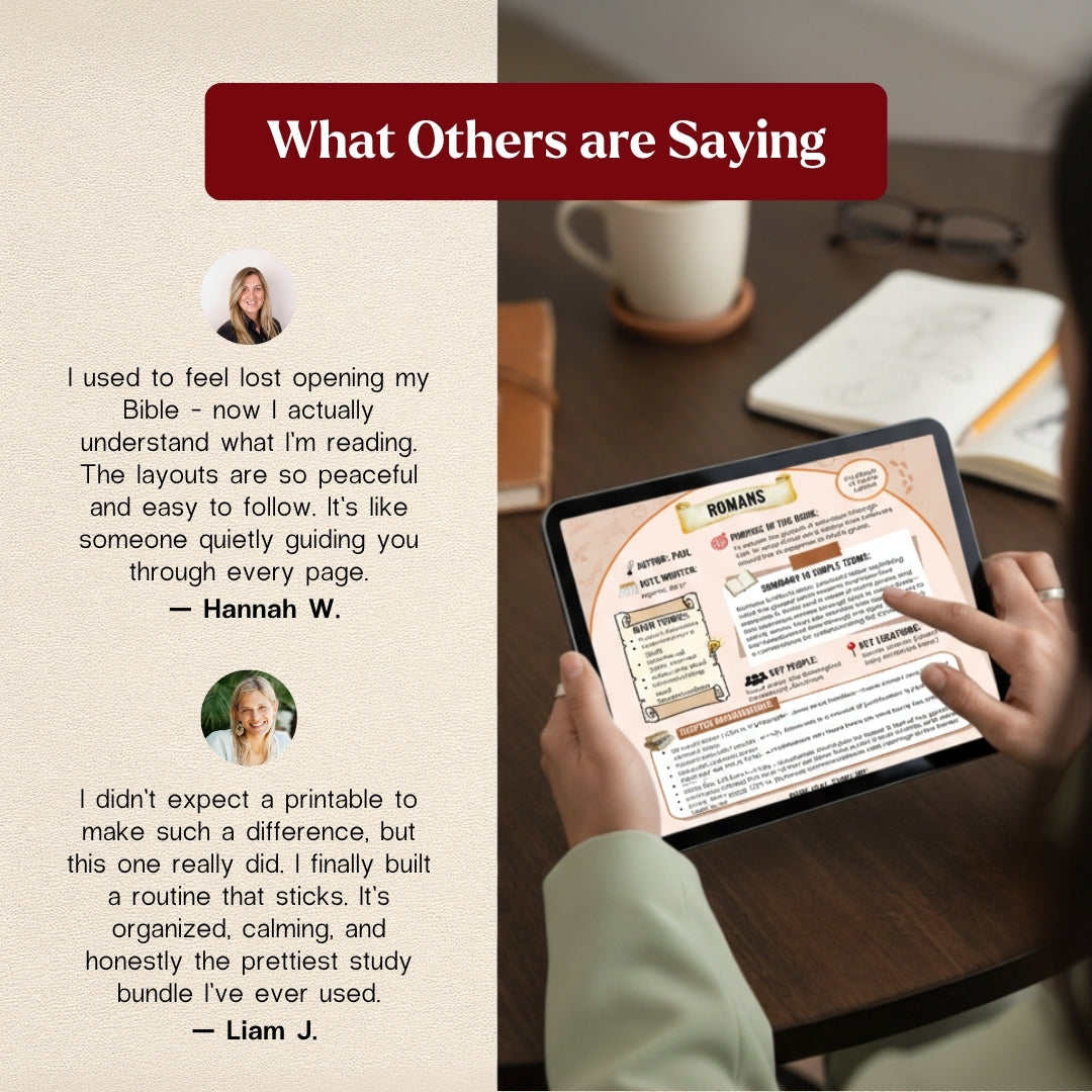- ✔️ Deeper understanding – reflection prompts, verse mapping, and study tools help Scripture sink into your heart, not just your mind.