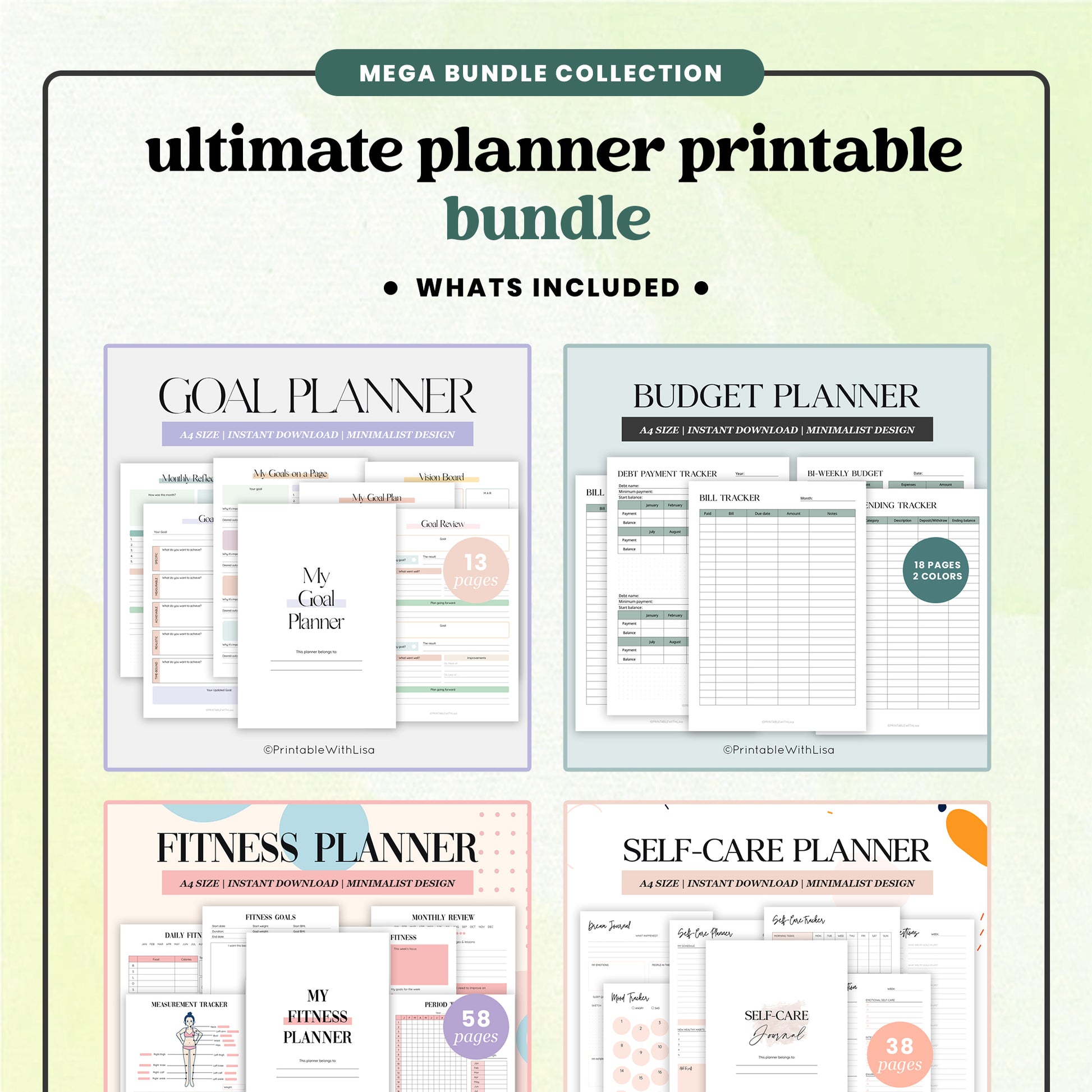 Ultimate planning bundle: goal setting, fitness, budgeting, and self-care tools—designed to help you stay organized, motivated, and productive.
